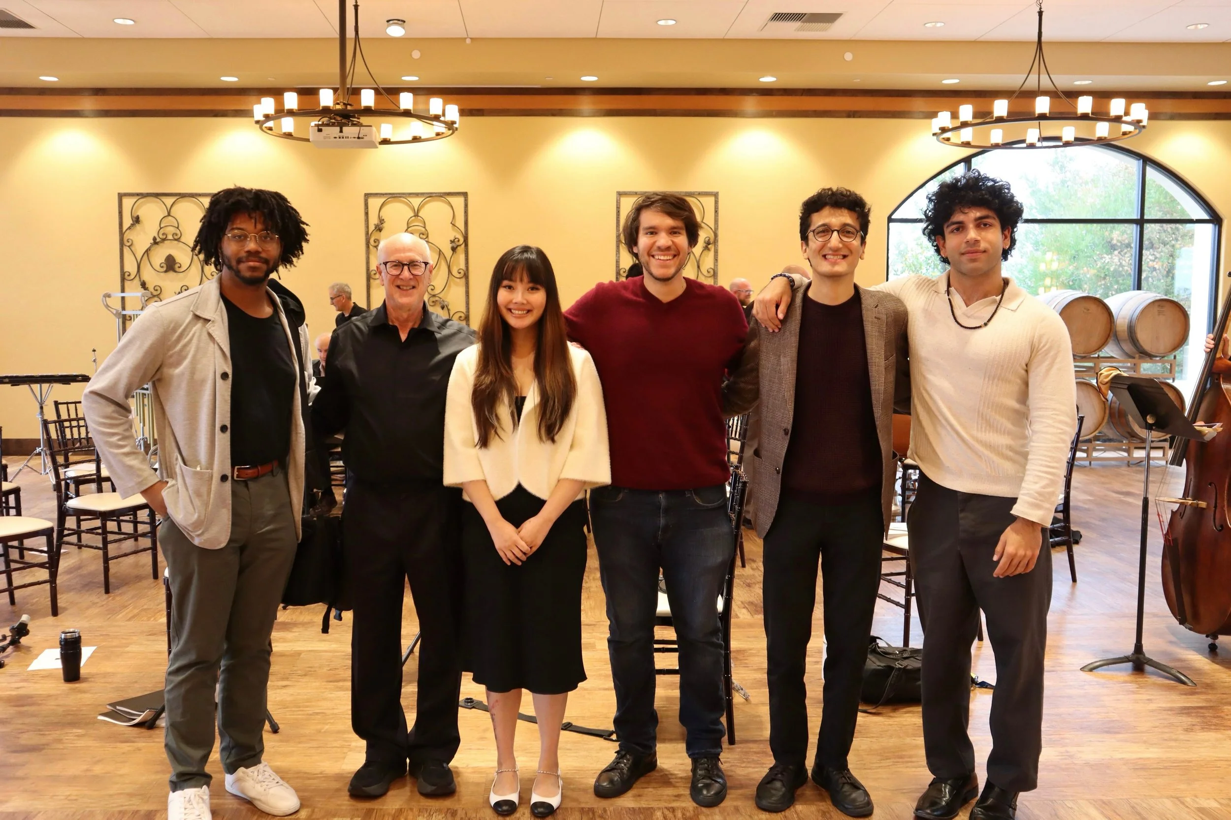 Ty, fellow composer participants, and Pacific Chamber Orchestra conductor Lawrence Kohl in Livermore, CA.